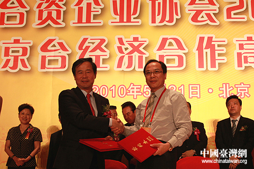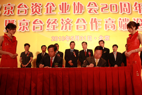 中國(guó)臺(tái)灣網(wǎng)5月31日北京消息 北京臺(tái)資企業(yè)協(xié)會(huì)成立二十周年慶典活動(dòng)暨京臺(tái)經(jīng)濟(jì)合作高端論壇31日在京舉行,北京臺(tái)協(xié)與臺(tái)灣省農(nóng)會(huì)、“中國(guó)生產(chǎn)力中心”、金屬研究中心、臺(tái)北企業(yè)經(jīng)理人協(xié)進(jìn)會(huì)和海峽救助協(xié)會(huì)等島內(nèi)團(tuán)體簽署了長(zhǎng)期合作協(xié)議。