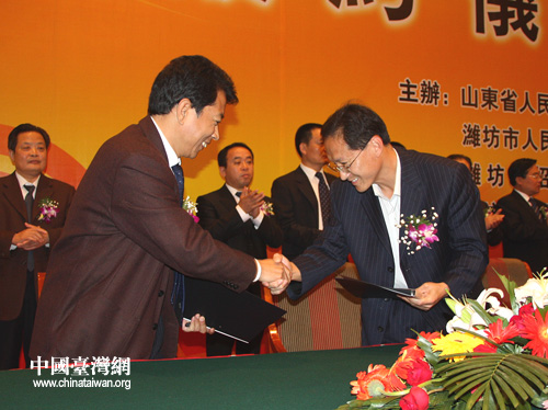 中國臺灣網(wǎng)9月27日濰坊消息 “第十四屆魯臺經(jīng)貿(mào)洽談會大項目簽約儀式”于昨天下午在濰坊舉行。山東省有關部門、濰坊市政府負責人及簽約項目雙方代表參加儀式。