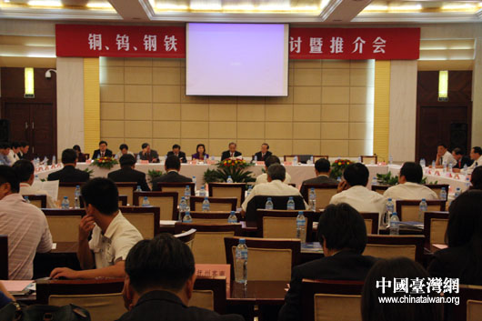 9月21日上午,由國(guó)務(wù)院臺(tái)辦和江西省政府共同主辦的“2009贛臺(tái)經(jīng)貿(mào)合作研討會(huì)”在南昌開幕。開幕后,兩岸工商企業(yè)代表就有關(guān)投資合作項(xiàng)目及協(xié)議現(xiàn)場(chǎng)簽約,隨后,江西省七個(gè)專題的研討暨項(xiàng)目推介會(huì)同時(shí)展開。圖為銅、鎢、鋼鐵產(chǎn)業(yè)專題研討會(huì)暨推薦會(huì)現(xiàn)場(chǎng)。(中國(guó)臺(tái)灣網(wǎng) 鐘寶華 攝)