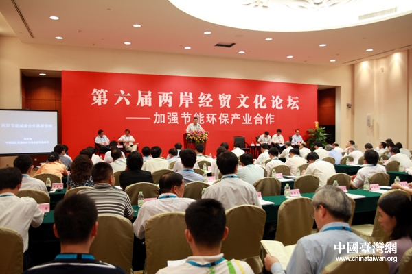 第六屆兩岸經(jīng)貿(mào)文化論壇10日下午舉行“加強節(jié)能環(huán)保產(chǎn)業(yè)合作”專題座談。(中國臺灣網(wǎng) 鐘寶華 攝)