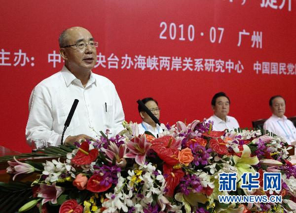 7月11日,中國國民黨榮譽(yù)主席吳伯雄出席兩岸經(jīng)貿(mào)文化論壇閉幕式并講話。 當(dāng)日,為期四天的第六屆兩岸經(jīng)貿(mào)文化論壇在廣州落下帷幕。新華社記者馬占成攝