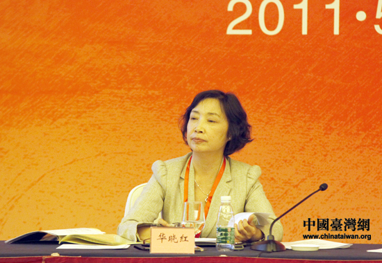 國對外經濟貿易大學教授華曉紅主持會議。ㄖ袊_灣網 田云鵬 攝)