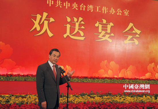 中國臺灣網(wǎng)5月8日成都消息 5月8日晚,中共中央臺灣工作辦公室為第七屆兩岸經(jīng)貿(mào)文化論壇舉行歡送晚宴。圖為中共中央臺辦主任王毅在晚宴上致辭!。ㄖ袊_灣網(wǎng) 田云鵬 攝)