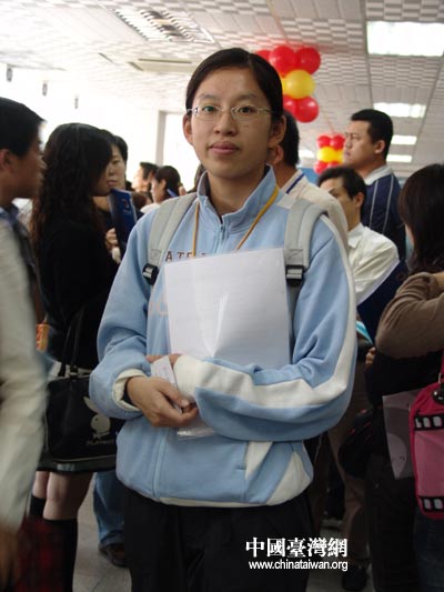 本次招聘會吸引了100余位來自臺灣的專業(yè)技術(shù)人才、在大陸讀書和工作的臺生、還有許多從廈門對岸的金門專程趕來參加招聘會的學(xué)生,如金門技術(shù)學(xué)院一次性就組織了60個畢業(yè)生前來參加招聘會。所以這也是臺灣專業(yè)人才及畢業(yè)生首次跨越海峽,來大陸人才市場進(jìn)行的集體性求職活動。(徐麗麟) |