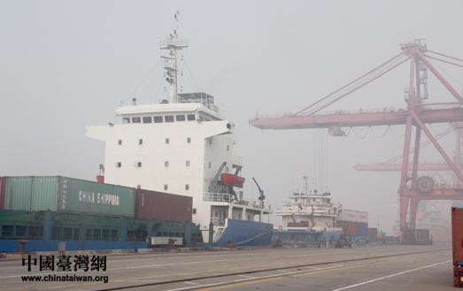 “面向大!獌砂睹襟w江蘇沿海行”聯(lián)合采訪活動(dòng)7日上午走訪了南通港。 (中國臺(tái)灣網(wǎng) 王偉 攝)