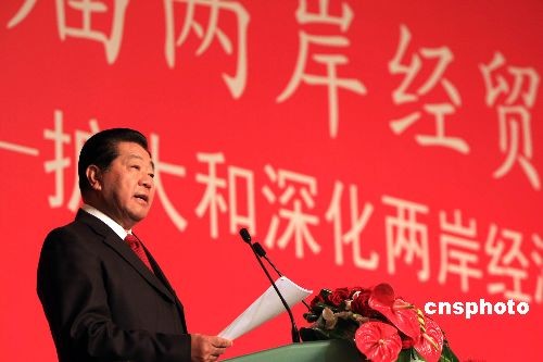 12月20日,中共中央政治局常委、全國(guó)政協(xié)主席賈慶林在上海出席第四屆兩岸經(jīng)貿(mào)文化論壇,并在發(fā)表演講時(shí)表示:“大陸愿意盡最大努力協(xié)助臺(tái)灣應(yīng)對(duì)國(guó)際金融危機(jī)”。本次論壇主題是“擴(kuò)大和深化兩岸經(jīng)濟(jì)交流與合作”,主要議題包括:拓展兩岸金融及服務(wù)業(yè)合作;促進(jìn)兩岸雙向投資;構(gòu)建兩岸經(jīng)濟(jì)交流的制度化安排。 中新社發(fā) 湯彥俊 攝
