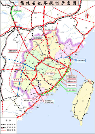“369海峽鐵路網(wǎng)”即:建設沿海、杭閩廣、浦建龍梅等“三縱”;北京-合肥-福州-臺北、昆明-漳州-廈門-高雄、衢州-寧德、橫峰-福州、向塘-莆田、長。莸 “六橫”;形成連接海峽經(jīng)濟區(qū)的九個環(huán)狀鐵路。