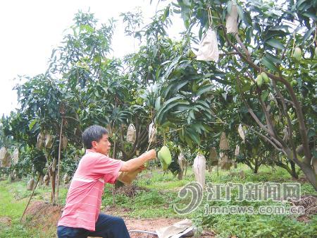 劉榮輝在新會(huì)種植水果已經(jīng)有8年的時(shí)間,其3200多畝的果園面積是近10戶臺(tái)灣果農(nóng)中最大的。6月初的一個(gè)雨后的下午,記者驅(qū)車來到其位于羅坑鎮(zhèn)的交山芒果場。