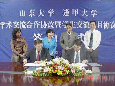 華夏經(jīng)緯網(wǎng)9月13日訊:9月10日下午,在山東大學(xué)邵館第一會(huì)議室,山東大學(xué)與逢甲大學(xué)學(xué)術(shù)交流合作協(xié)議暨學(xué)生交流項(xiàng)目協(xié)議簽約儀式舉行。山東大學(xué)校長(zhǎng)展?jié)头昙状髮W(xué)校長(zhǎng)劉安之分別代表各自學(xué)校在協(xié)議書上簽字。這是繼2005年與東吳大學(xué)簽署全面學(xué)術(shù)交流協(xié)議以來(lái),山東大學(xué)與第三個(gè)臺(tái)灣高校簽署全面交流協(xié)議。