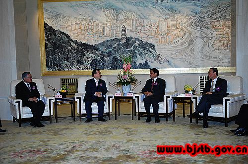 王市長結合北京當前迎辦奧運的特點表示,北京正在以籌辦一屆有特色、高水平的奧運會為契機,全面推進“新北京、新奧運”戰(zhàn)略構想,努力建設經濟發(fā)達、文化繁榮、社會和諧、生態(tài)良好的現(xiàn)代文化國際城市,這將為大家提供難得的發(fā)展機遇。他希望臺灣工商企業(yè)界、科技界的朋友抓住機遇,積極參與北京的經濟社會建設,合法經營,健康發(fā)展,不斷擴大京臺兩地在高科技產業(yè)、生產性服務業(yè)、文化創(chuàng)意產業(yè)、都市型農業(yè)以及奧運建設等領域的合作。