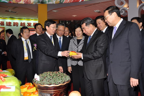 2010年11月18日由農(nóng)業(yè)部、國臺辦、國家林業(yè)局、福建省人民政府共同主辦的第二屆海峽兩岸現(xiàn)代農(nóng)業(yè)博覽會·第十二屆海峽兩岸花卉博覽會在福建漳州隆重開幕。開幕式前,回良玉副總理興致勃勃地參觀了現(xiàn)代農(nóng)業(yè)“五新”展區(qū),詳細了解展區(qū)主要成果,在創(chuàng)業(yè)園展區(qū)與前...