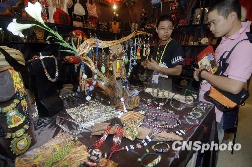 10月29日,臺(tái)灣少數(shù)民族飾品在廈門文博會(huì)上受歡迎。當(dāng)日,第二屆海峽兩岸(廈門)文化產(chǎn)業(yè)博覽交易會(huì)在廈門開幕。 中新社發(fā) 王東明 攝