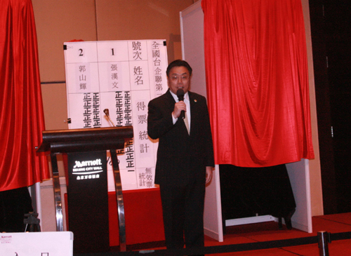 三位會長候選人張漢文、郭山輝、林伯豐分別進行了10分鐘的政見發(fā)表,向與會會員闡述執(zhí)政理念及當(dāng)選后的執(zhí)政規(guī)劃。經(jīng)過兩輪的不記名投票,郭山輝、張漢文分別獲得選票101張和100張。
