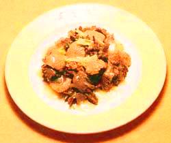 “油爆雙脆”是山東歷史悠久的傳統(tǒng)名菜。相傳此菜始于清代中期,為了滿足當?shù)剡_官貴人的需要,山東濟南地區(qū)的廚師以豬肚尖和雞胗片為原料,經(jīng)刀工精心操作,沸油爆炒,使原來必須久煮的肚頭和胗片快速成熟,口感脆嫩滑潤,清鮮爽口。該菜問世不久,就聞名于市,原名“爆雙片”,后來顧客稱贊此菜又脆又嫩,所以改名為“油爆雙脆”。到清代中末期,此菜傳至北京、東北和江蘇等地,成為中外聞名的山東名菜。