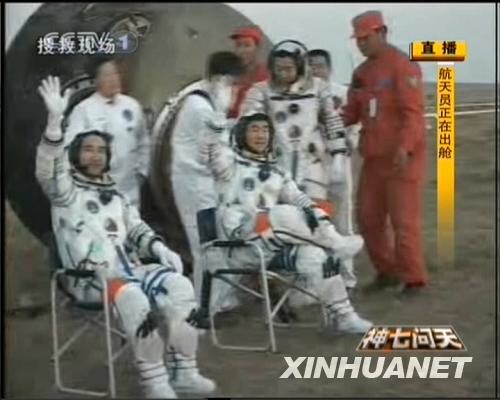 9月28日,返回艙門打開,航天員出艙。新華社發(fā)(電視截圖)
