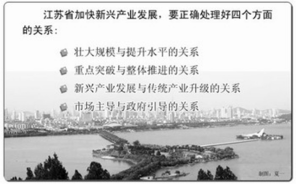 江蘇省發(fā)展新興產(chǎn)業(yè)的總體思路是:深入貫徹落實(shí)科學(xué)發(fā)展觀,以促進(jìn)轉(zhuǎn)型升級(jí)、建設(shè)現(xiàn)代產(chǎn)業(yè)體系為目標(biāo),著力構(gòu)筑人才高地,著力突破關(guān)鍵技術(shù),著力優(yōu)化產(chǎn)業(yè)布局,著力擴(kuò)大市場(chǎng)需求,加快創(chuàng)建一批具有自主知識(shí)產(chǎn)權(quán)和自主品牌的產(chǎn)品,培育一批具有全球影響力的創(chuàng)新型企業(yè),打造一批特色產(chǎn)業(yè)基地,建設(shè)一批創(chuàng)新型城市,全面提升全省的國際競(jìng)爭(zhēng)力。