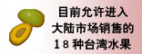 臺(tái)灣省農(nóng)會(huì)理事長(zhǎng)古源俊介紹說,大陸已同意臺(tái)灣的十二種水果,四月間可以免稅、專案綠色通關(guān)方式進(jìn)入北京、上海市場(chǎng)銷售。 |