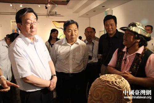 郭庚茂一行參觀少數(shù)民族文化園區(qū)展覽室。圖片來(lái)源:河南省臺(tái)辦