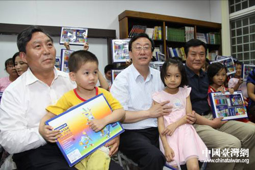 中國(guó)臺(tái)灣網(wǎng)6月22日屏東消息 21日,河南省省長(zhǎng)郭庚茂率領(lǐng)“中原經(jīng)濟(jì)區(qū)合作之旅——走進(jìn)臺(tái)灣”參訪團(tuán)一行來(lái)到屏東縣高樹(shù)鄉(xiāng)參訪,除了購(gòu)買330萬(wàn)元人民幣的屏東水果和農(nóng)產(chǎn)加工品外,還與臺(tái)灣少數(shù)民族進(jìn)行鄉(xiāng)情聯(lián)誼,捐資30多萬(wàn)元人民幣用于幫助少數(shù)民族文化園區(qū)基礎(chǔ)設(shè)施建設(shè)及屏東家扶中心親子書(shū)香屋建設(shè),為當(dāng)?shù)孛癖姺瞰I(xiàn)愛(ài)心。