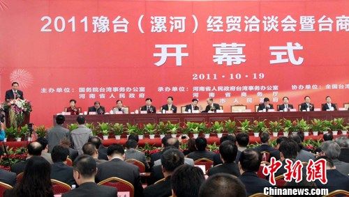 10月19日,“2011豫臺經(jīng)貿(mào)洽談會”在河南省漯河市開幕,來自兩岸三地500余名臺商與會,“臺商中原行”活動同時啟動。