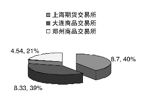 數(shù)據(jù)顯示,2009年上海、大連和鄭州三大商品期貨市場(chǎng)交易量達(dá)21.57億手,成交額超過(guò)130萬(wàn)億元人民幣,分別比2008年增長(zhǎng)了58.14%和81.5%。不過(guò),與2008年各市場(chǎng)均衡發(fā)展的狀況相比,去年三大市場(chǎng)卻重新顯現(xiàn)出“貧富”分化的特征。其中,上期所成交額是大商所的近2倍,是鄭商所的近4倍。