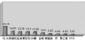 新品種脫穎而出成為去年國(guó)內(nèi)期市的另一典型特征,也是期市規(guī)模大幅增長(zhǎng)的另一原因。工業(yè)品方面,上海螺紋鋼期貨成交13.3萬(wàn)億元人民幣,成為期市明星品種。在大連市場(chǎng),雖然傳統(tǒng)農(nóng)產(chǎn)品期貨品種出現(xiàn)了不同程度的萎縮,比如大豆一號(hào)成交額同比大幅減少62.61%,玉米期貨成交額也同比大幅下降72.06%,但近年來(lái)上市的油脂期貨和化工產(chǎn)品期貨卻出現(xiàn)良好的增長(zhǎng)勢(shì)頭,