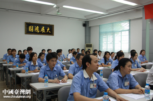 來(lái)自臺(tái)灣的知名講師鄭琳鋒對(duì)飛鴻五金飾品有限公司中層管理干部進(jìn)行培訓(xùn)。(中國(guó)臺(tái)灣網(wǎng) 胡珊珊 攝)