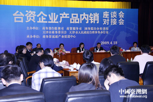 由商務(wù)部臺(tái)港澳司、國臺(tái)辦經(jīng)濟(jì)局、天津商務(wù)委、天津市臺(tái)辦共同主辦的“臺(tái)資企業(yè)產(chǎn)品內(nèi)銷對接及座談會(huì)”19日在天津舉行。(中國臺(tái)灣網(wǎng) 鐘寶華 攝)
