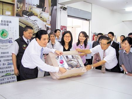 昨天上午,馬英九在“陸委會(huì)”主委賴幸媛的陪同下,到臺(tái)南市安平工業(yè)區(qū)參觀傳統(tǒng)產(chǎn)業(yè)億進(jìn)寢具公司,馬英九、賴幸媛等官員參觀寢具的制造過(guò)程中,馬英九還親自踩縫紉機(jī)、燙棉被,感受傳產(chǎn)勞工的辛苦后,隨即和來(lái)自各縣市的四十五位傳統(tǒng)業(yè)者代表座談。