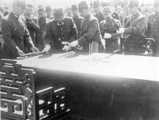 日軍就位待命簽降書(shū)、獻(xiàn)刀 圖片來(lái)源:千龍網(wǎng)