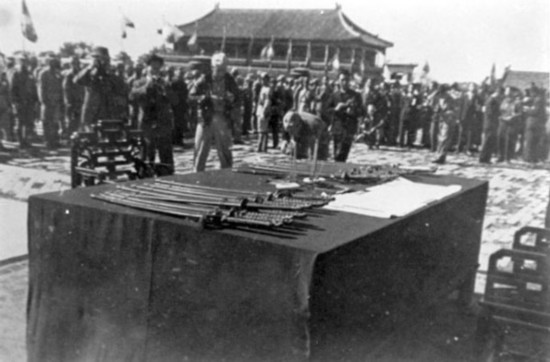 1945年10月10日,日軍在北平太和殿前的投降儀式 圖片來(lái)源:千龍網(wǎng)