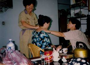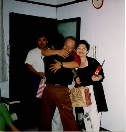 午夜,從墓地回到臺北永和秀朗路的大姐家時,很意外又驚訝的發(fā)現(xiàn)大哥帶著侄子(忠翰)站在巷口,慈母的逝去及十年的兩地分離,我們不由萬分感慨,悲從中來,大哥緊緊擁抱著我,兄弟倆放聲大哭一場。原來大哥一家人為慈母送完殯后就回美國加州去了,后來聽說我和金鳳被臺灣當局最后放行后,他竟然再度跨越重洋返回臺灣,為了就是想見見遠在北京的四弟和弟媳金鳳。