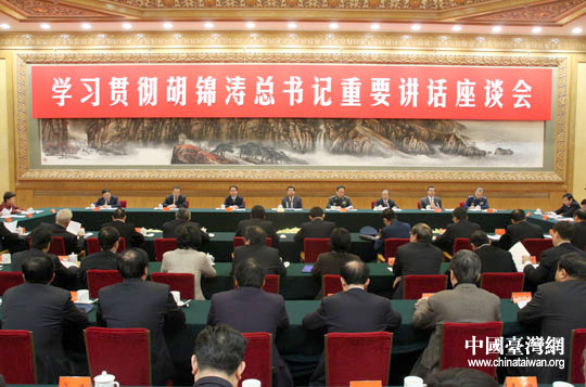 中臺辦、國臺辦等單位30日下午在京舉行學(xué)習(xí)貫徹胡錦濤總書記去年底對臺重要講話座談會。中共中央政治局常委賈慶林出席并講話。(中國臺灣網(wǎng) 鐘寶華 攝)
