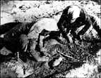 敵后根據(jù)地軍民在公路、村口、 家門(mén)口到處埋下地雷陣,廣泛 開(kāi)展地雷戰(zhàn)。 |