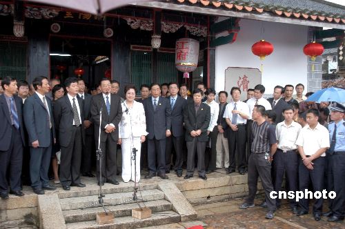 江丙坤于本月十七日抵達(dá)福建,先后出席了第八屆海峽兩岸經(jīng)貿(mào)交易會(huì)、第三屆福建商品交易會(huì),并參觀了武夷山、廈門。今日上午,江丙坤偕夫人陳美惠等一行七人踏上了尋根之路。