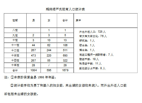 一、鷓鴣塘村和嚴(yán)氏現(xiàn)有人口概況