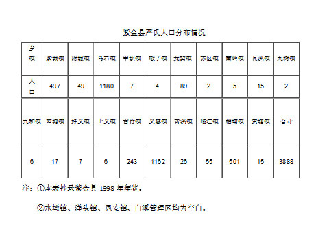 二、紫金縣嚴(yán)氏人口分布情況