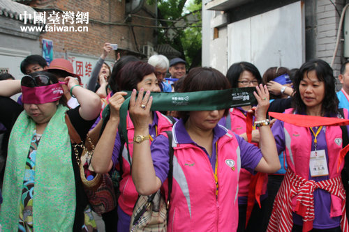 臺(tái)灣參訪團(tuán)成員蒙上眼睛準(zhǔn)備開(kāi)始體驗(yàn)。(中國(guó)臺(tái)灣網(wǎng) 郭瑩瑩 攝)