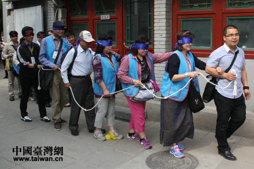 中國(guó)臺(tái)灣網(wǎng)5月15日北京消息 臺(tái)灣2013兩岸NPO發(fā)展與推動(dòng)交流參訪團(tuán)今天上午來(lái)到北京紅丹丹教育交流文化中心,在志愿者的引導(dǎo)下,切身體驗(yàn)了盲人的日常生活以及他們是如何欣賞影視作品的。