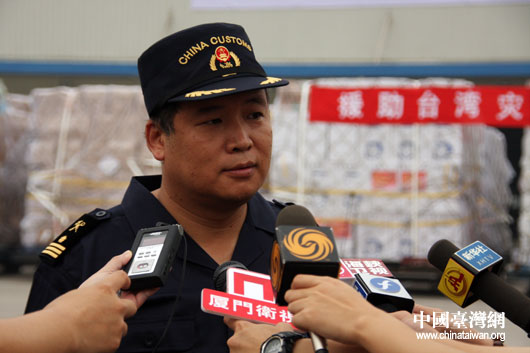 海關(guān)人士在啟運儀式現(xiàn)場接受媒體采訪。(中國臺灣網(wǎng) 鐘寶華 攝)