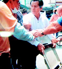 人民網(wǎng)8月26日電 屏東縣長曹啟鴻25日到萬丹鄉(xiāng)灣內(nèi)村勘災(zāi),同行的民進(jìn)黨籍縣議員盧同協(xié)不滿村民嗆聲罵縣長,拿石頭砸傷對(duì)方的耳朵。受傷的村民堅(jiān)持要提告,因?yàn)樗皇菐痛蠹覡幦】禳c(diǎn)領(lǐng)到4萬元補(bǔ)助款,沒想到就被打傷了,縣長曹啟鴻則解釋當(dāng)時(shí)他被災(zāi)民圍住陳情,根本沒注意現(xiàn)場的火爆氣氛。