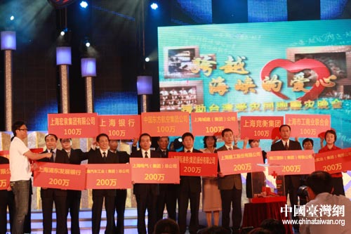 “跨越海峽的愛心——援助臺灣受災(zāi)同胞賑災(zāi)晚會”8月20日晚在北京舉行,圖為上海15家企業(yè)的代表上臺為臺灣受災(zāi)同胞捐款,送去溫暖和愛。 (中國臺灣網(wǎng) 高斯斯 攝)