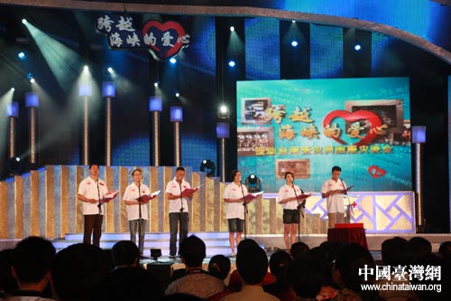 “跨越海峽的愛心——援助臺灣受災(zāi)同胞賑災(zāi)晚會”8月20日晚在北京舉行,圖為濮存昕、蔣雯麗、張涵予等朗誦《同胞心》,表達(dá)兩岸同根同源的情誼。(中國臺灣網(wǎng) 高斯斯 攝)