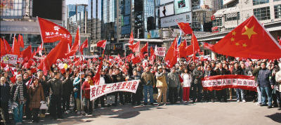 3月29日,加拿大多倫多市中心的Dundas 廣場舉行了“宣傳西藏真相,維護祖國統(tǒng)一”大型集會,集會由中國留學生組織,得到各界華人的廣泛支持。 吳 敏攝