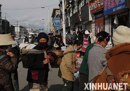 4月6日,市民在拉薩市北京東路購買日用品。截至目前,在拉薩“3·14”事件中受損的900多商戶,已有500多戶恢復營業(yè)。西藏自治區(qū)政府將采取在一定時期內為受損商戶提供無息貸款或政府貼息貸款等優(yōu)惠政策,讓受損商戶盡快恢復生產(chǎn)生活。 新華社記者 索朗羅布 攝
