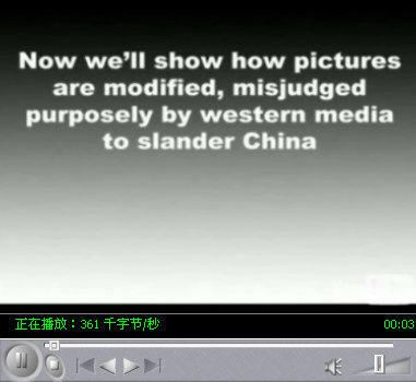 這段視頻在開篇就指出:“所有的西方媒體都‘興奮異常’的去報到那些所謂的‘真相’,現(xiàn)在我們就向大家展示一下,那些照片是怎樣的被西方媒體修改之后去詆毀中國的”。視頻中涉及的西方媒體包括德國的N-TV,圖片報(Bild Zeitung),RTL電視臺,美國的華盛頓郵報,這幾家媒體涉嫌將尼泊爾警察毆打示威者的圖片偷梁換柱的說成是中國警察在拉薩所為;而柏林早郵報(Berliner Mogenpost),BBC等媒體,則被批評將中國警方的"營救"照片描述成"拘捕";美國的CNN是刻意刪去了右側向行進中的軍車投擲石頭的人群的畫面,掐頭去尾給人以軍車肆虐拉薩街頭的政府暴力印象;德國的明鏡周刊也被指責使用錯誤的文字標題對圖片給予歪曲的暗示。