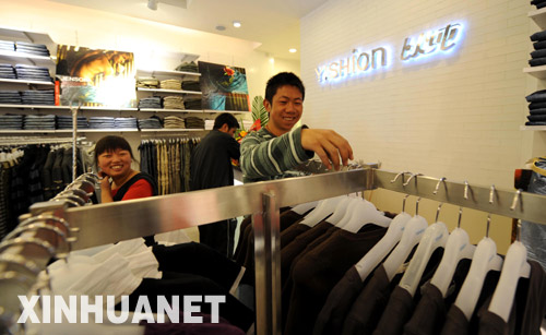 5月8日,拉薩“以純”服裝店重新開業(yè),售貨員正在整理貨架!耙约儭狈b店在拉薩“3·14”打砸搶燒事件中遭到嚴(yán)重破壞,5名少女被不法分子活活燒死。4月11日,首個(gè)拿到拉薩“3·14”受損商戶財(cái)政貼息貸款100萬元的“以純”服裝店正式開始清場(chǎng)裝修。 新華社記者 覺果 攝
