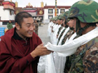 大昭寺僧人向官兵獻(xiàn)哈達(dá)