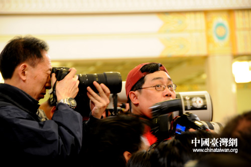 中國(guó)臺(tái)灣網(wǎng)3月18日北京消息 每年兩會(huì)的總理記者見(jiàn)面會(huì),都是最受矚目的議程之一。各路媒體為了能搶占有利地形拍攝或提問(wèn),奇招不一而足。當(dāng)大家把關(guān)注點(diǎn)齊齊對(duì)準(zhǔn)臺(tái)上的總理時(shí),媒體自己也成了這場(chǎng)新聞事件中難以置身事外的一員!。ɡ罨眨牟D)