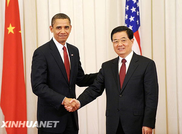 11月17日,中國(guó)國(guó)家主席胡錦濤和美國(guó)總統(tǒng)奧巴馬在北京人民大會(huì)堂共同會(huì)見(jiàn)中外記者。新華社記者李學(xué)仁攝